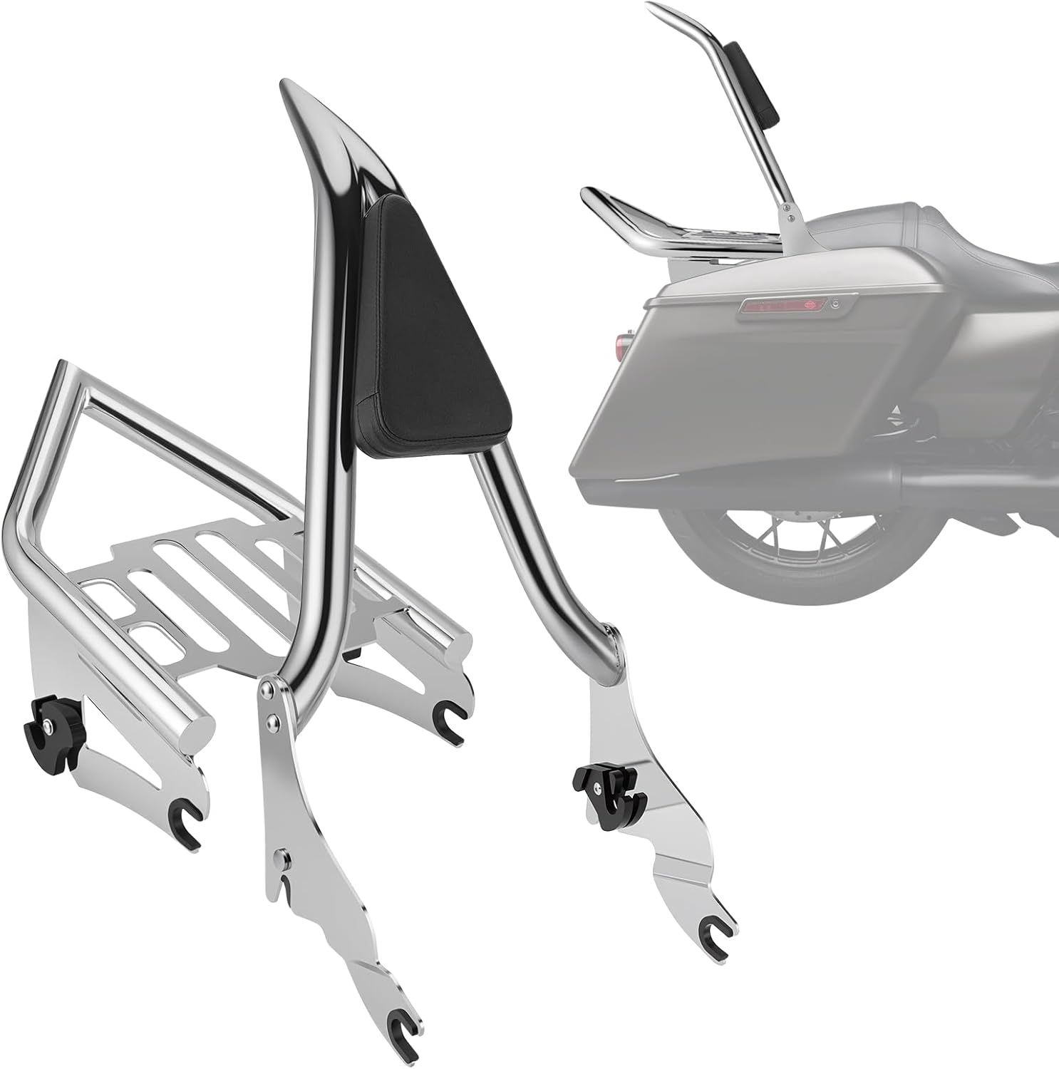 Sissy Bar Luggage Rack, Detachable Rear Passenger Backrest Compatible with Harley Davidson Touring Models 2009-2024 Street Glide Road Glide Electra Glide Road King Chrome
